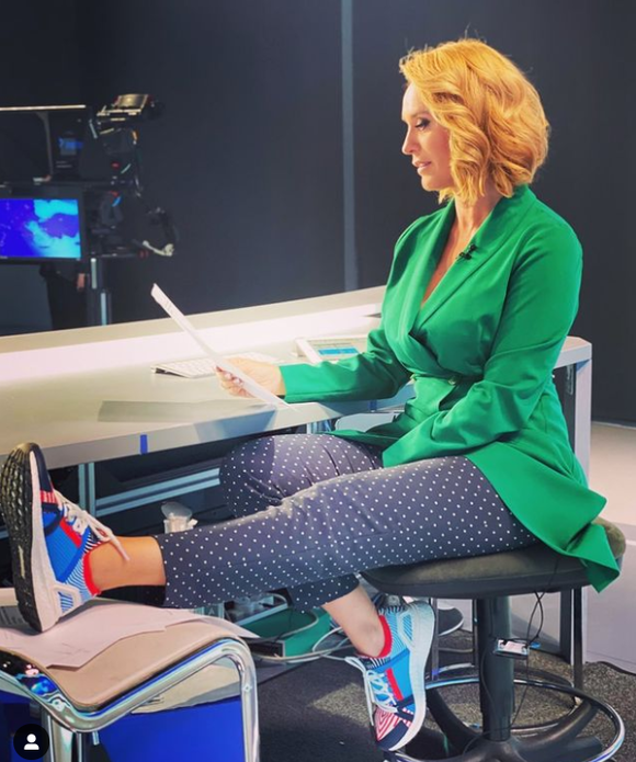 La această întrebare a răspuns, de curând, chiar Andreea Esca, cea care a postat pe contul său de Instagram o fotografie ce o înfățișează din unghiul opus, cel din care se poate observa faptul că celebra prezentatoare și-a asortat elegantul sacou verde cu o pereche e pantaloni casual, cu buline, și cu o pereche de pantofi sport extrem de colorați. Cine ar fi crezut?