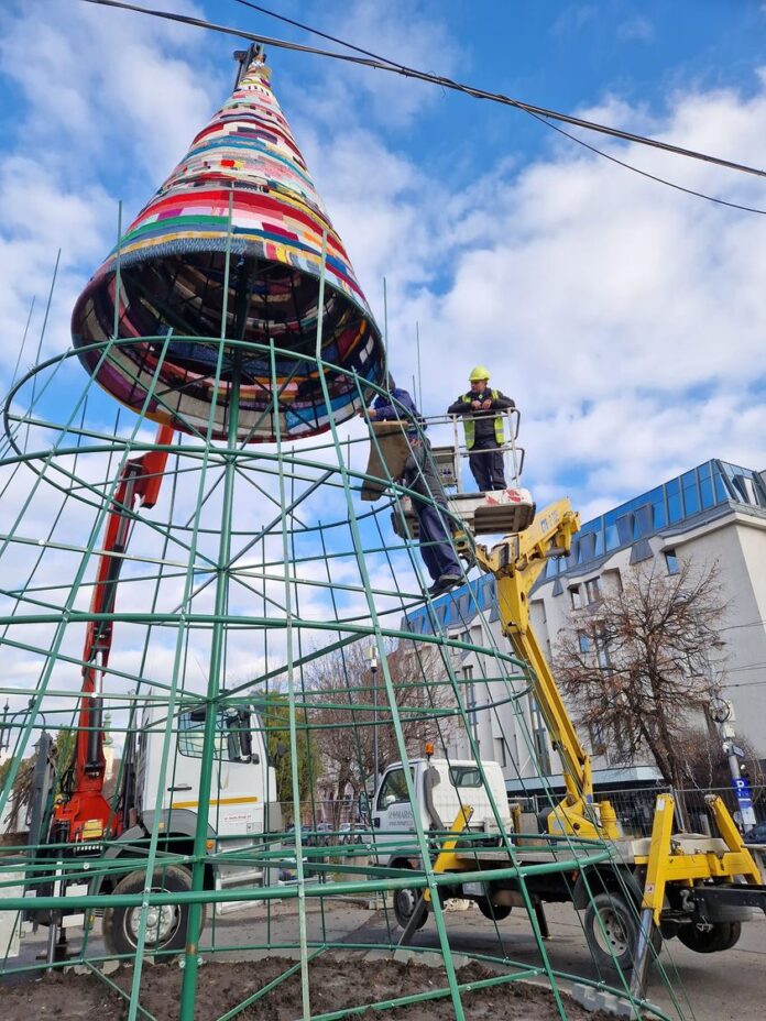 Bradul este tricotat manual, fiind realizat din fulare de câte 20 de cm create de persoane care au aderat la proiect, anunță Festivalul Cultural Alternativ Kult pe pagina de Facebook.