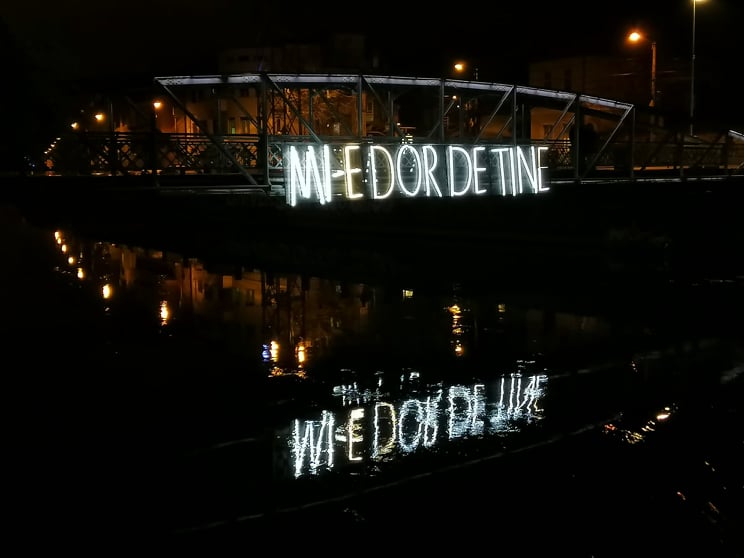Povestea acestei instalații de lumină a început în 2018, când a fost montată pe Podul Elisabeta din Cluj-Napoca, apoi, ca urmare a impactului pe care l-a avut mesajul a ajuns și în alte orașe.