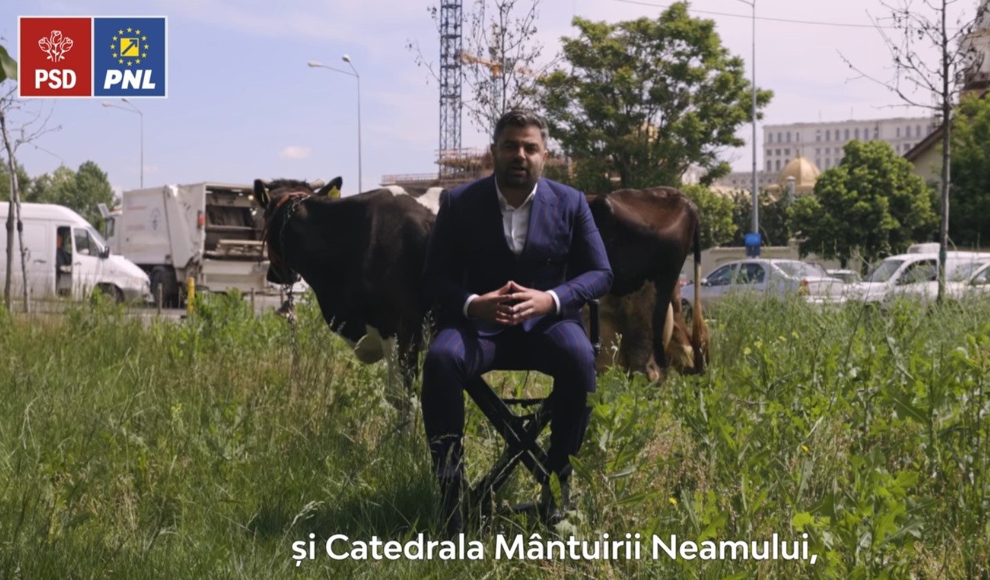 Păi măi om bun și total penibil…cam care este de fapt mesajul pe care voi, candidat al celui mai mare mare partid și vaca, ați vrut să-l transmiteți? Neștiind pic de administrație, ai dus săracul animal pe pajiștea lui Nicușor…dar e bine…atât ai putut! Ai anunțat și tu înainte la Partid că te duci cu vaca la păscut în loc de întâlniri cu alergătorii?