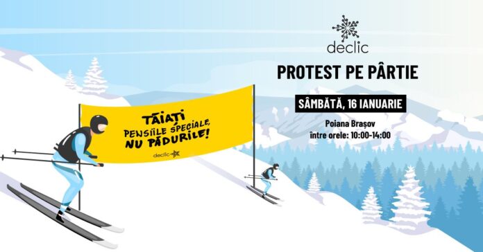 Membrii Declic anunţă că vor coborî pe pârtie, pe schiuri, cu un banner cu mesajul „Tăiaţi pensiile speciale, nu pădurile!” pentru a atrage atenţia noului Parlament şi noului Guvern asupra a două probleme majore nerezolvate: tăierea pensiilor speciale uriaşe şi salvarea pădurilor de la tăieri ilegale masive.