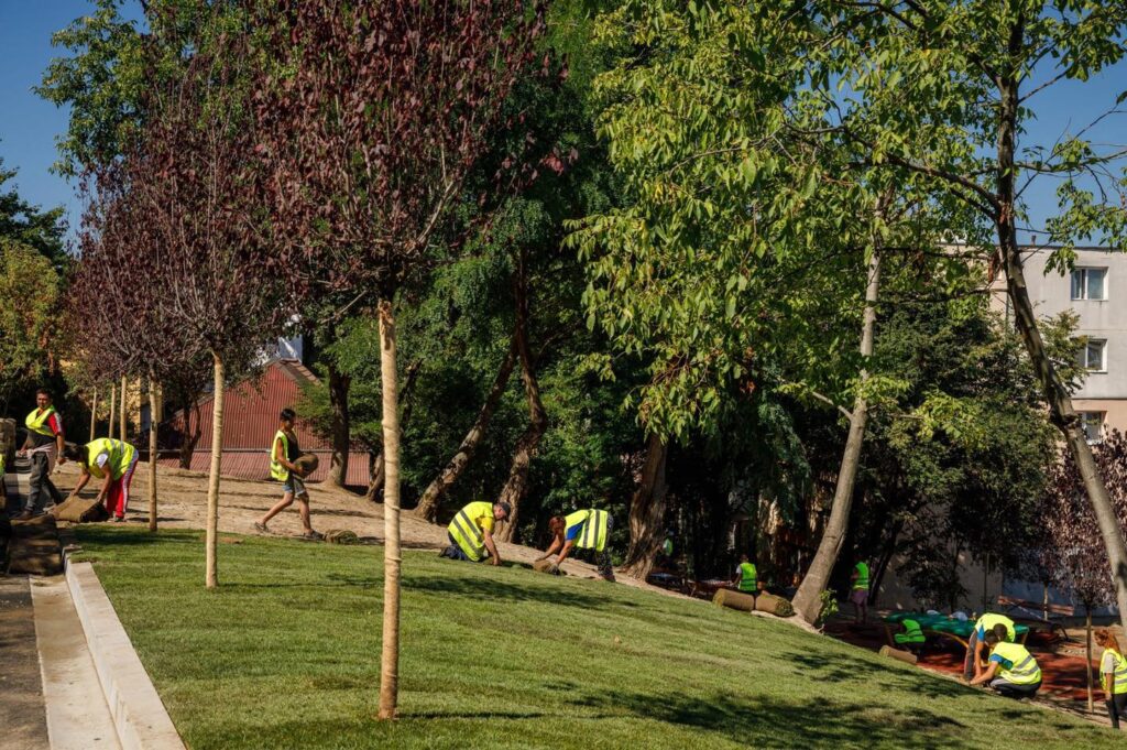 Lucrările la acest parc includ și plantarea a 55 arbori cu balot, amenajarea unui loc de joacă pentru copii, dar și zonă de fitness cu aparate instalate pe dale din granule de cauciuc.
