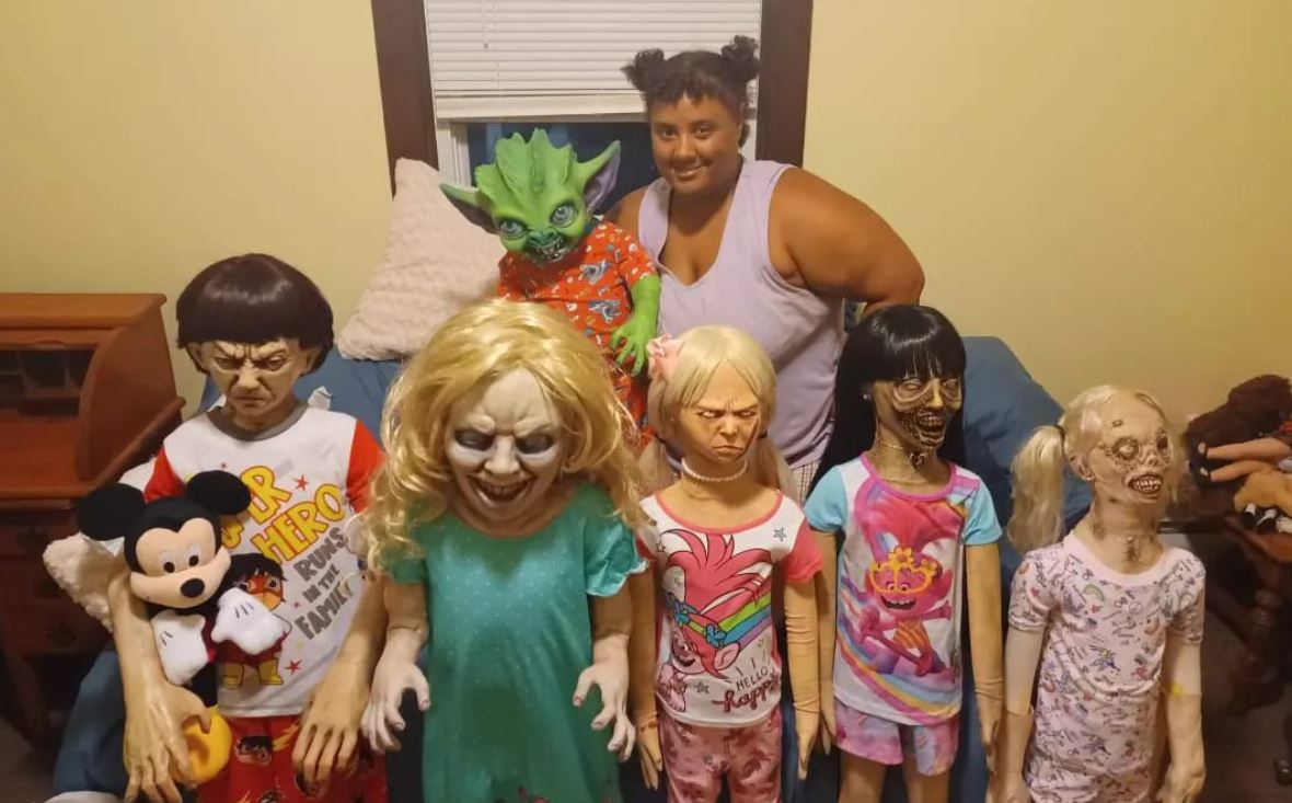 Femeia este ”căsătorită” cu o păpușă ”zombie”, iar celelalte păpuși ar fi ”copiii rezultați din căsnicie”