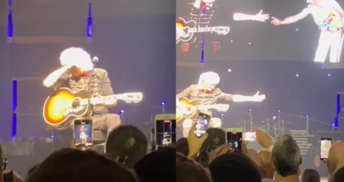 Chitaristul Brian May a fost surprins plângând după ce a interpretat, în duet cu holograma fostului solist de la Queen, melodia Love Of My Life.