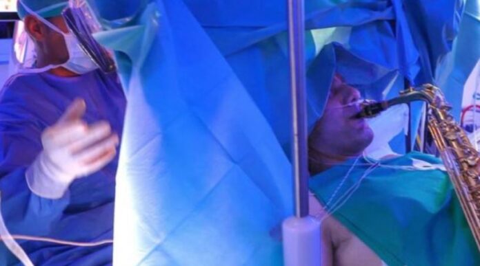 Operația, explicată de cadrele medicale ca fiind una extrem de ”delicată” reprezintă o premieră medicală, deoarece pacientul în cauză nu doar că a rămas treaz, dar a cântat la saxofon, transmite publicația Upi.com.