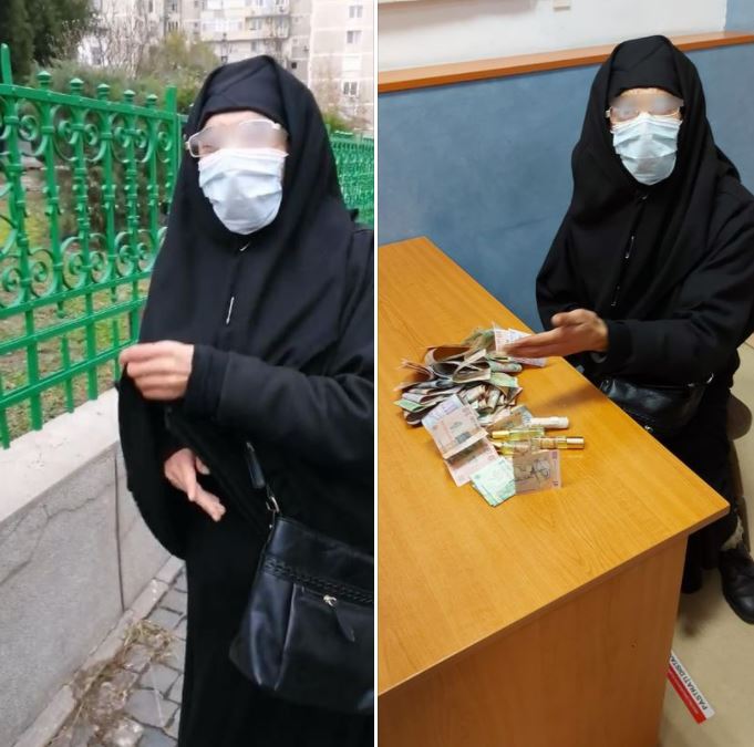 ”Oftează şi cere bani enoriaşilor din biserică. „Bogdaproste, e pentru mânăstire”, suspină călugărița. Apoi, cu pași repezi, se îndreaptă spre ieșire. Ca să nu creeze suspiciuni, măicuța se oprește câteva clipe pe scările lăcașului de cult și, în semn de mulțumire pentru mila primită, începe să-i miruiască pe credincioși”, povestesc polițiștii locali pe Facebook.