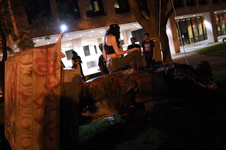 Aproximativ 100 de oameni s-au adunat în jurul statuii lui Pike la 11 p.m. Cât a durat vandalismul: 15 minute. După 15 minute, protestatarii au decis că focul ar fi cea mai bună soluție.