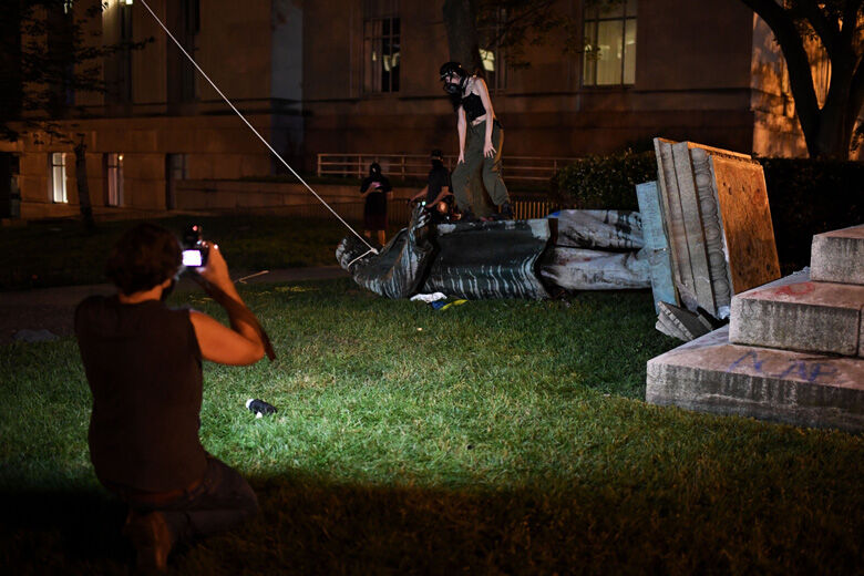 ”Poliția D.C. nu își face treaba în timp ce o statuie este fie dărâmată și arsă. Acești oameni ar trebui să fie arestați imediat. O rușine.”
