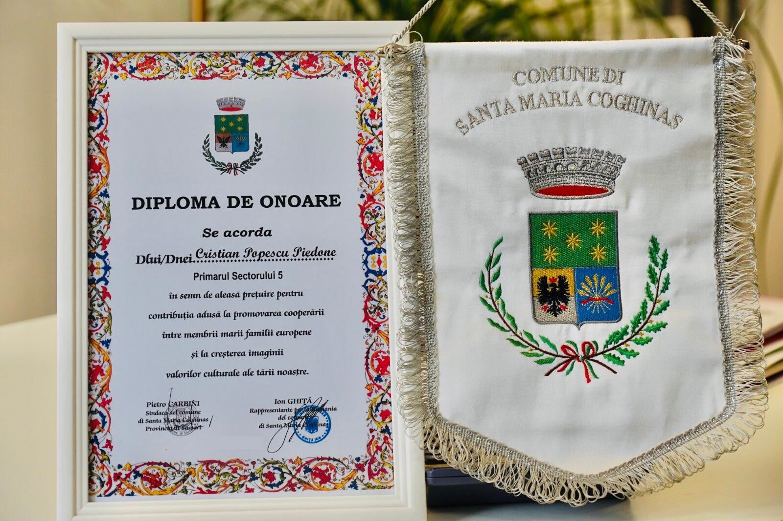 La sfârșitul întrevederii, primarul comunei Santa Maria de Coghinas i-a propus primarului Sectorului 5, Cristian Popescu Piedone, un acord de înfrățire între Sectorul 5 și comuna italiană pe care acesta o administrează.
