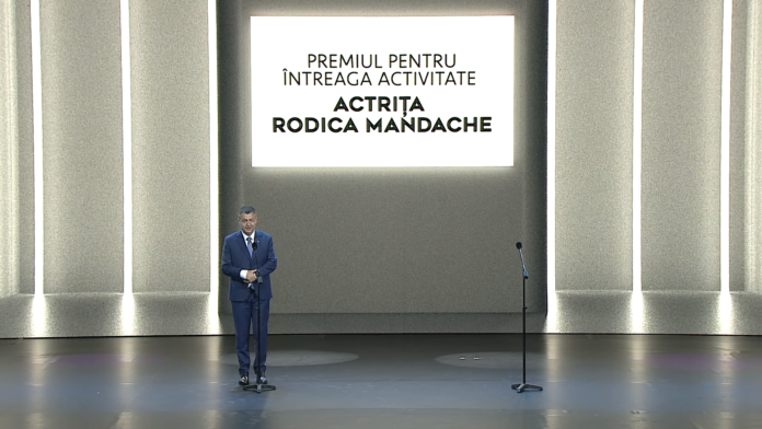 „Bună seara! Îmi prinde bine această mască, ştiţi foarte bine, câteodată nu ştii ce sa faci cu mâinile, aşa ca este foarte utilă şi la altceva decât pentru protecţia epidemiologică. Mai ales că sunt încercat de mari emoţii. Ce onoare pentru mine să am ocazia în această seară să-i înmânez un premiu Rodicăi Mandache care şi-a început activitatea înainte de a mă naşte eu…”, a spus la începutul discursului ministrul Culturii. Gheorghiu a continuat şi i-a povestit Rodicăi Mandache cum i-a „marcat întreaga copilărie”.