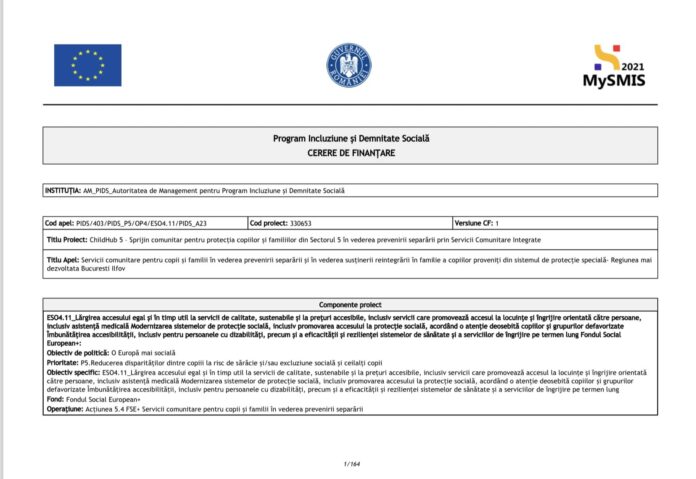Astfel, DGASPC Sector 5 a depus o cerere de finanțare pentru un proiect cu fonduri europene, care se numește ,,ChildHub 5 – Sprijin comunitar pentru protecția copiilor și familiilor din Sectorul 5 în vederea prevenirii separării prin Servicii Comunitare Integrate”. Proiectul propune oferiirea de servicii menite să prevină separarea copiilor de familiile din care fac parte.